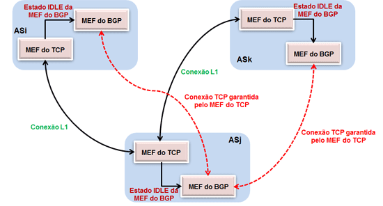 4. A MEF do TCP mantêm a conexão TCP. Se ela cair, a conexão BGP cai e o processo começa novamente por ela, que no momento adequado aciona novamente o estado IDLE do BGP.
