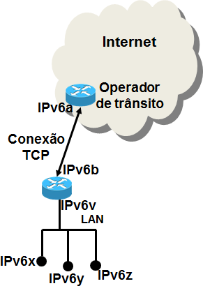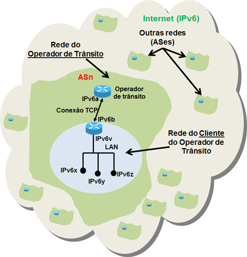 1. A LAN, passou a ser uma rede do operador de trânsito. Na realidade, embora a LAN não pertença ao operador de trânsito, os IPv6 pertencem a ele, partindo do pressuposto de que são IPv6 válidos.